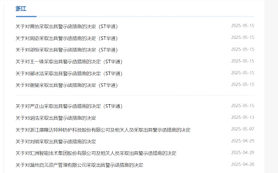 5月15日,浙江证监局发布连发七条公告,对浙江世纪华通集团股份有限公司(以下简称“世纪华通”)员工严正山、谢斐、郦冰洁、王一锋、邵恒、周宓、黄怡等七人采取出具警示函的行政监管措施,并记入证券期货市场诚信档案。
